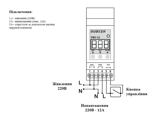 Таймер на DIN-рейку, до 12А, від 0,1 сек. до 99 год., 2,6 кВт, "RUBEZH" РВУ-12, електронний інтервальний таймер