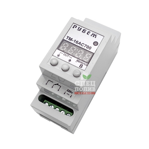 Реле часу на DIN-рейку, добово/тижневе, асторомічне від 99 до 693 вкл/вкл, 16 А, 3,5 кВт, "RUBEZH" ТМ-16АС700, таймер