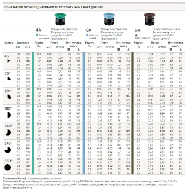 Витрата води: 0,02 - 0,22 м³/год (залежно від тиску та радіусу)