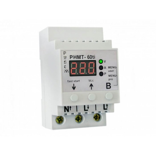 Реле контролю напруги "RUBEZH" РНМТ-60ti, 220 В, 13,2 кВт, 60А на DIN-рейку. Захист від перепадів, відсікач